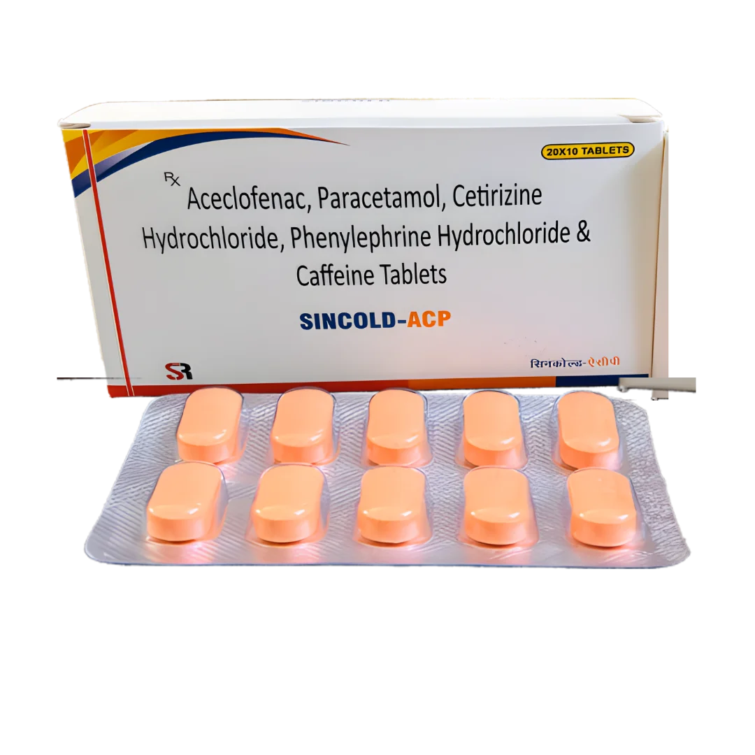 Aceclofenac 100mg, Paracetamol 325mg, Cetirizine & Caffeine 15mg, Phenylephrine Hydrochloride 5mg Tablets